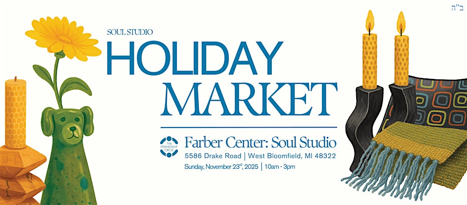 Join us for a festive day of art, shopping, and connection featuring one-of-a-kind handmade gifts created by the talented artists of Soul Studio—a program of Friendship Circle of Michigan.